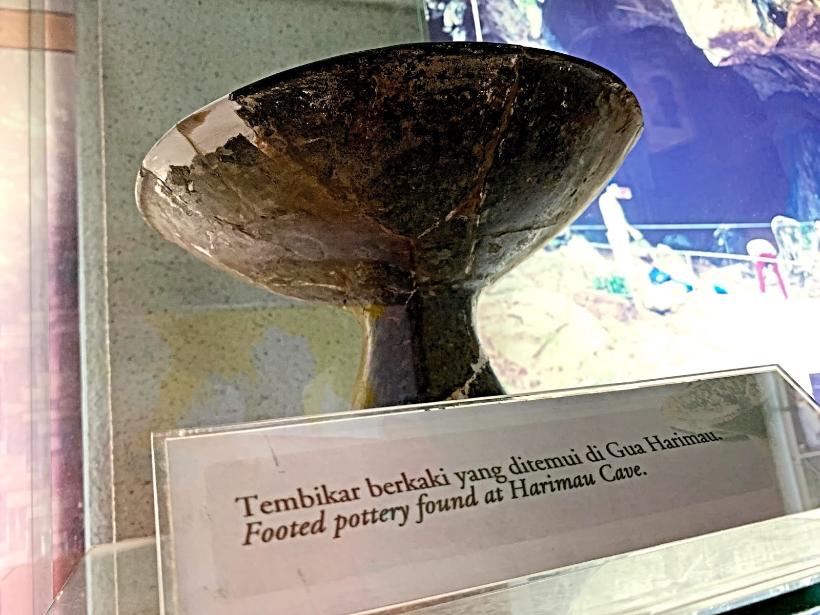 Footed pottery found in Harimau Cave