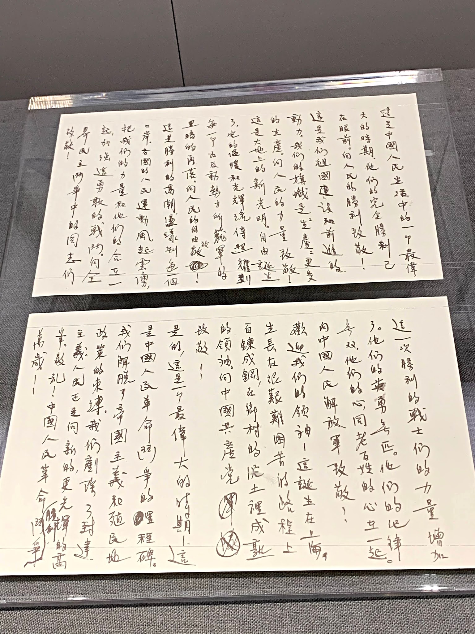 "Soong Ching Ling maintained kinship with her family throughout her life. She presented many kinsfolk belongings to remember domestic affection and pray for the reunification of China. On the eve of National Day in 1979, she wrote affectionately, "I can't help but miss the compatriots in Taiwan on this day when the whole country is celebrating the great festival of the motherland. Thirty years have passed already since Taiwan's separation. National reunification has not been completed. Should not each Chinese feel responsible?"