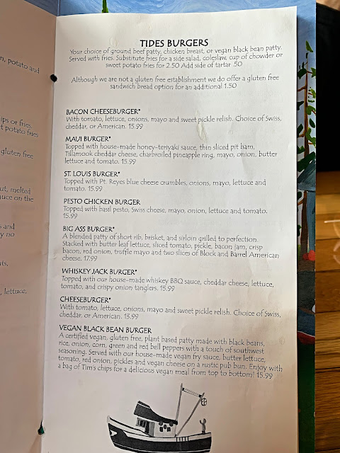 We were here for burgers today but the tavern serves a wide variety of seafood, burgers and pizza.
