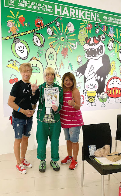 I did not dare dream that I would see the ever - talented Hariken draw a cartoon portrait of me and Hubs, colored and signed. But here he is drawing for us. Took him only 10 mins to complete his work. Wowwww, I got myself an original drawn cartoon by Hariken from Japan. I was beyond words; feeling extremely grateful for this grand opportunity.