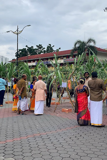 This is the first I’ve heard of this and am so grateful for the chance to experience the vibes yesterday. Was there early to watch the whole process, from the staff laying out the bricks to setting up the sugar canes to distributing the pots and milk. Then each family (temple, I believe) gatheredaround their station and started heating up their pots of milk.